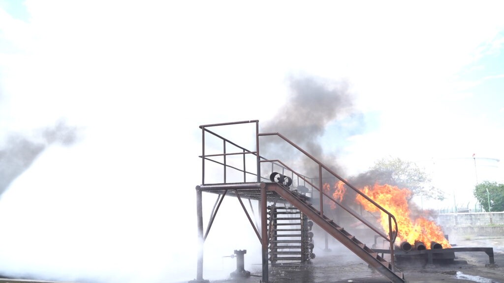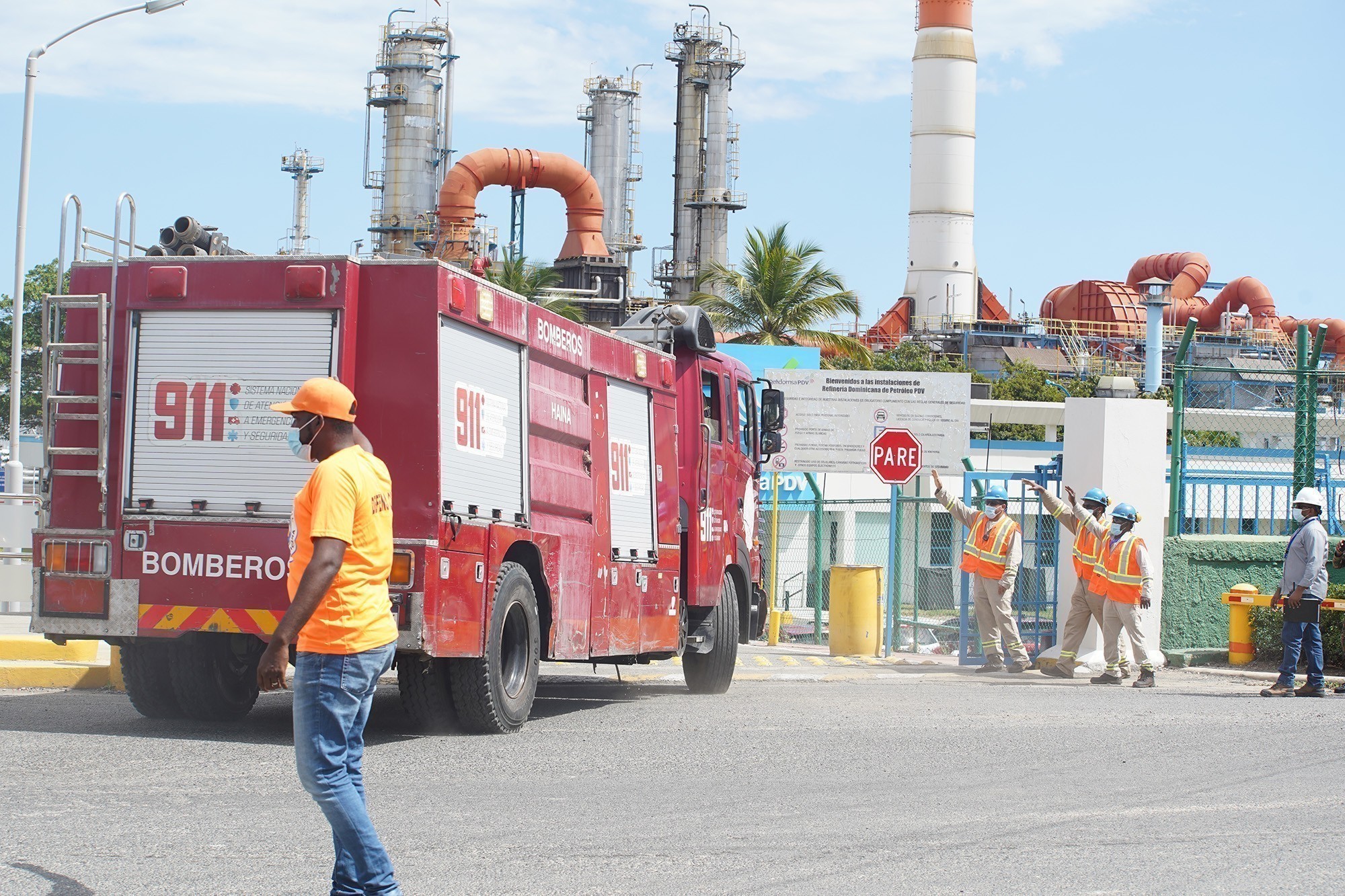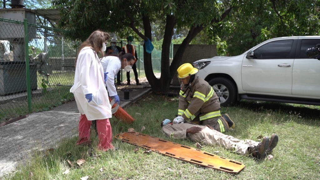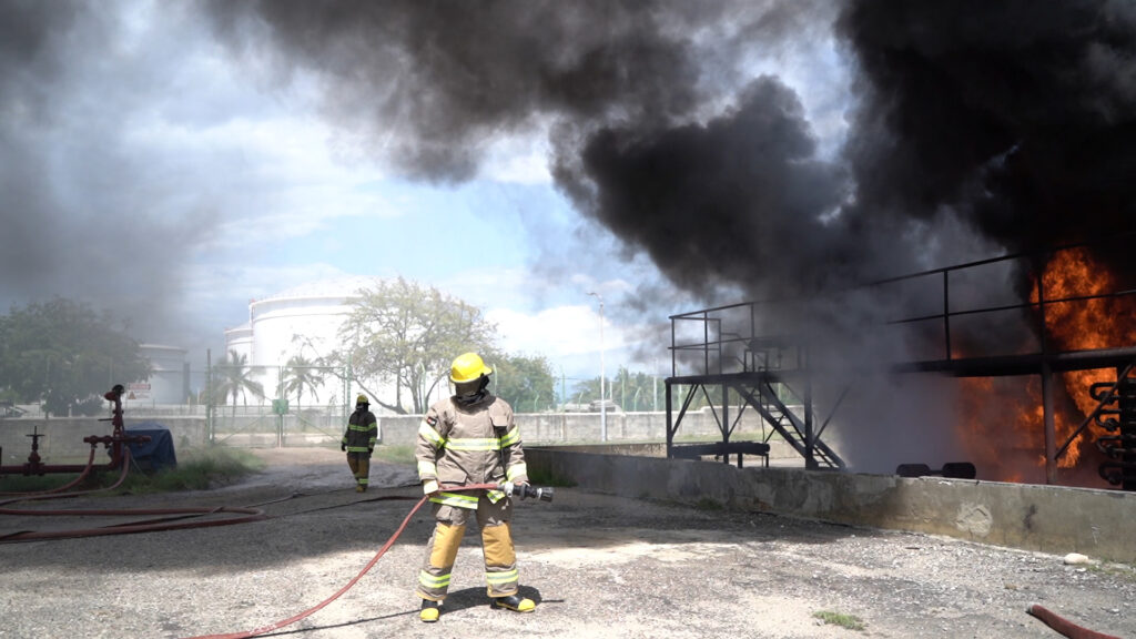 La prueba se realizó simulando un fuego en uno de los tanques de abastecimiento de combustibles de Refidomsa, evaluando el tiempo de respuesta de los organismos de rescate y las acciones de los civiles alrededor.