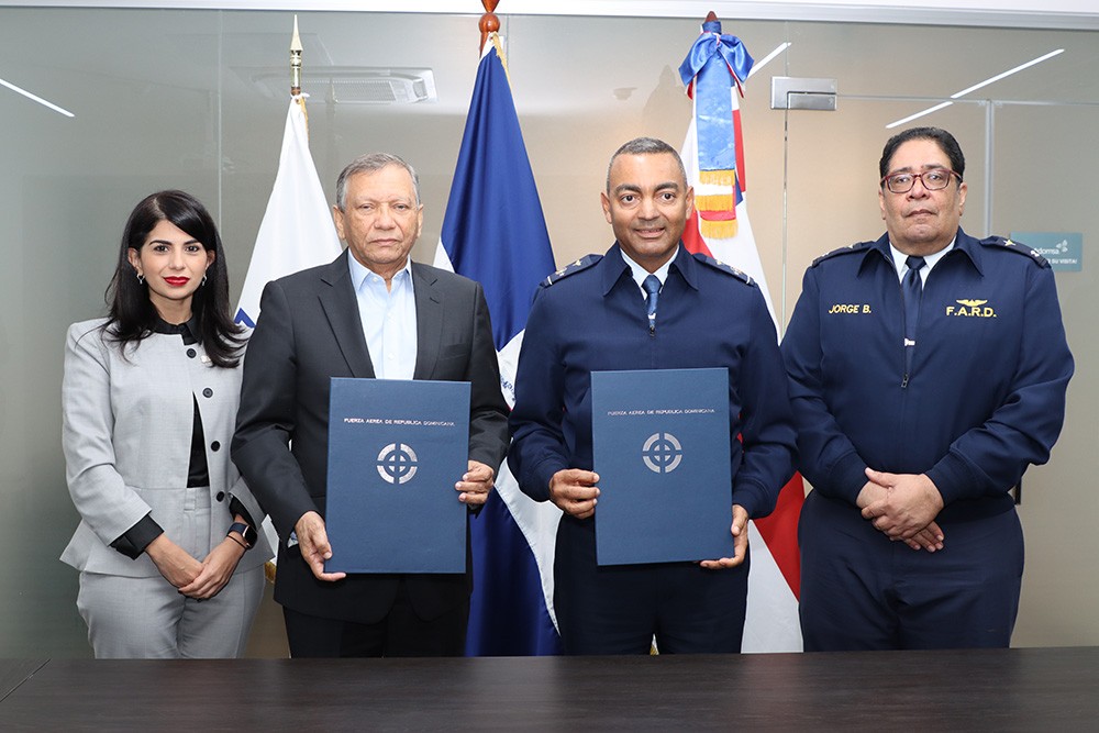 El acuerdo fue suscrito por el doctor Leonardo Aguilera, presidente de Refidomsa, y el mayor general Carlos R. Febrillet Rodríguez, comandante general de la Fuerza Aérea.